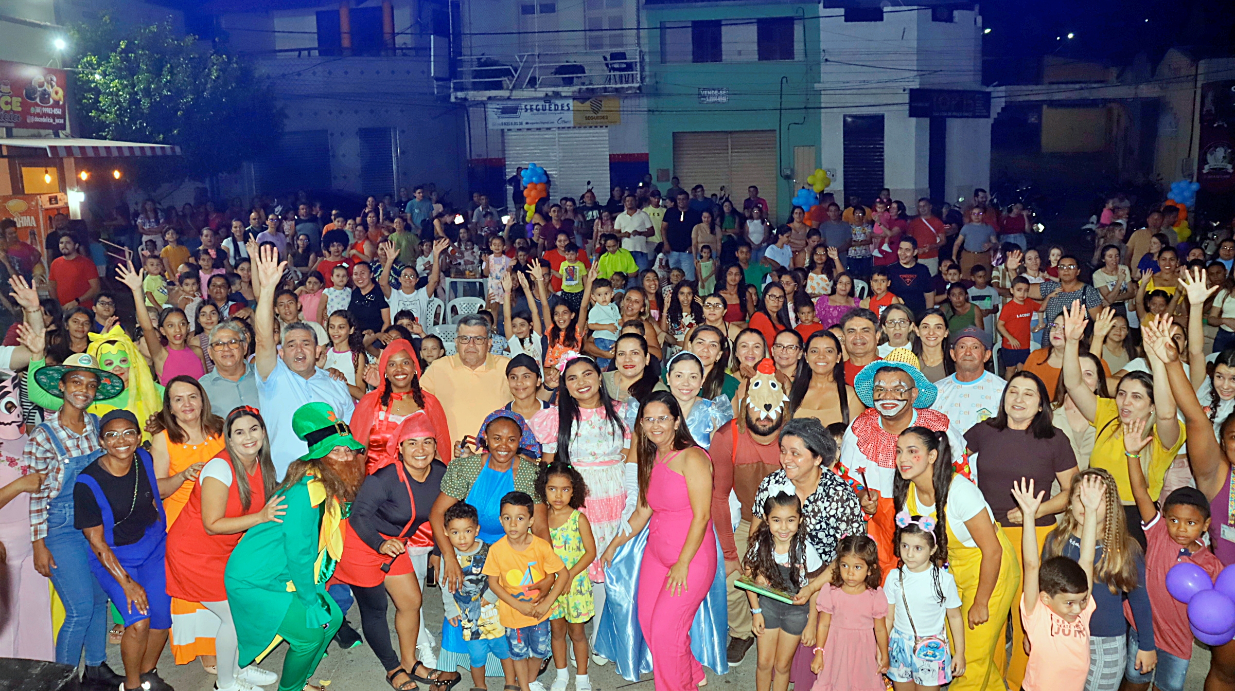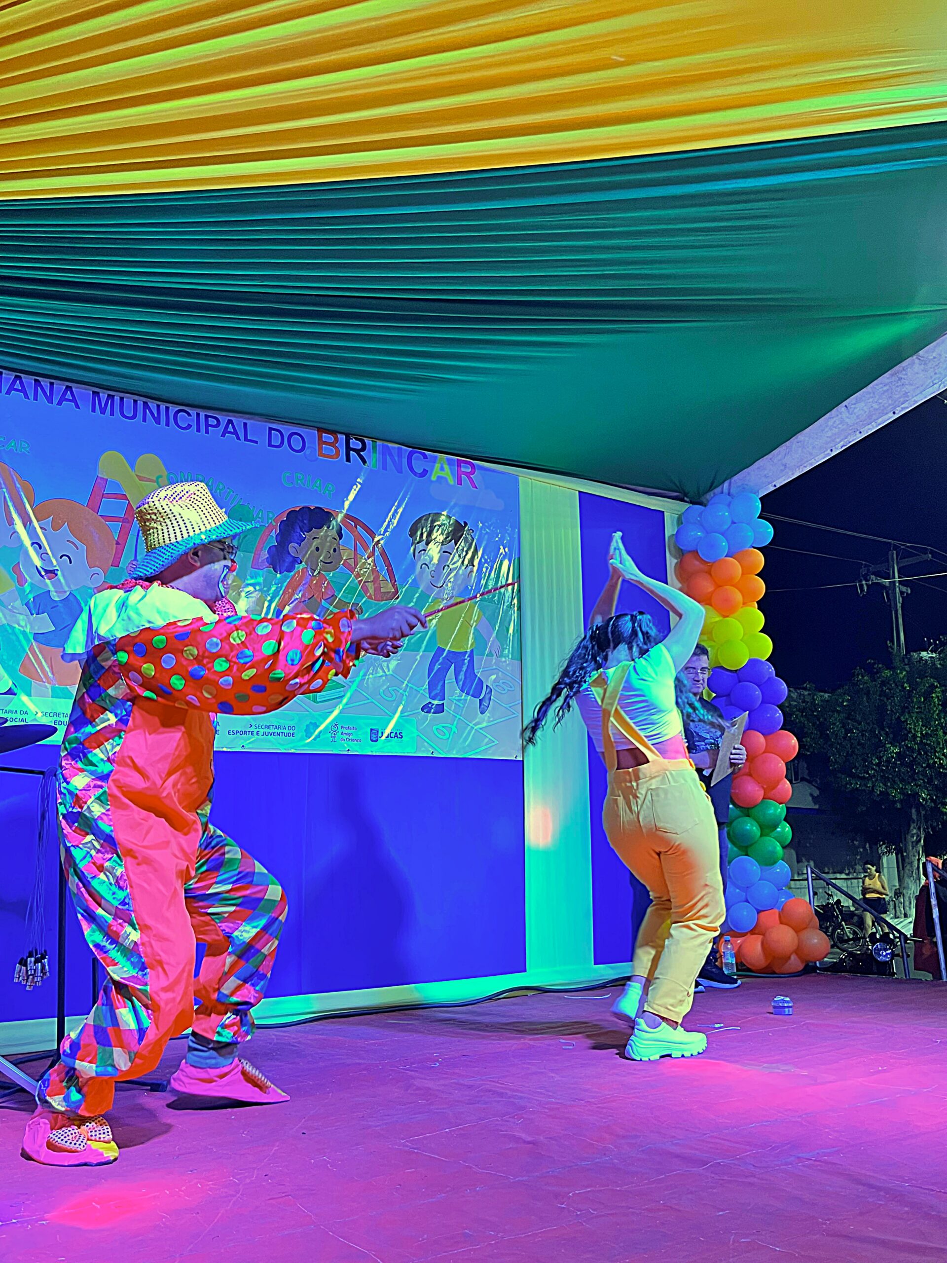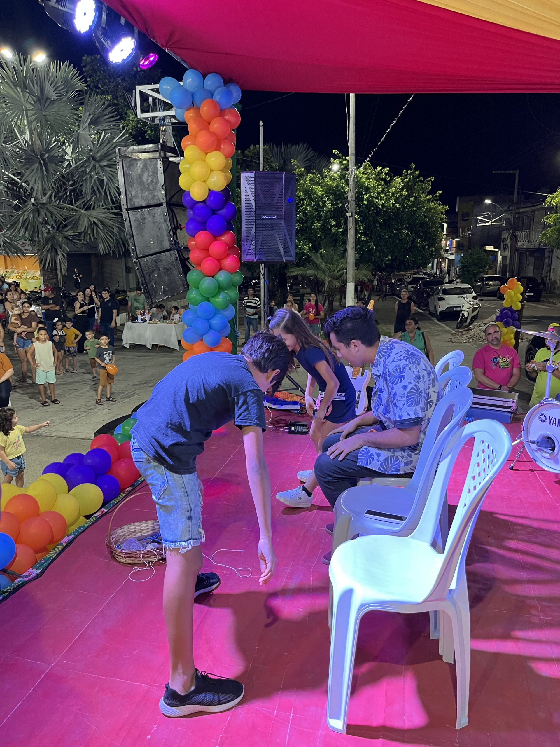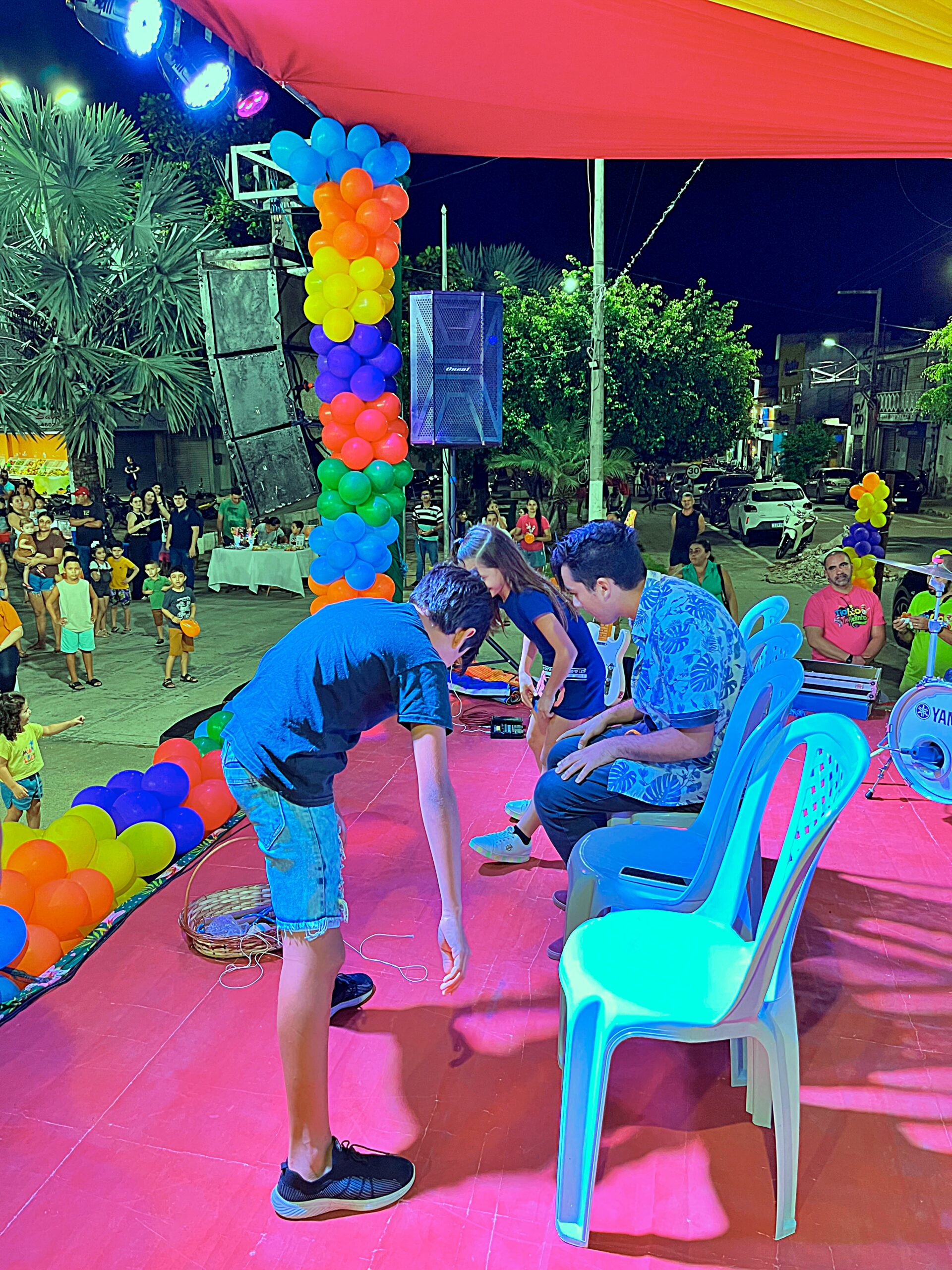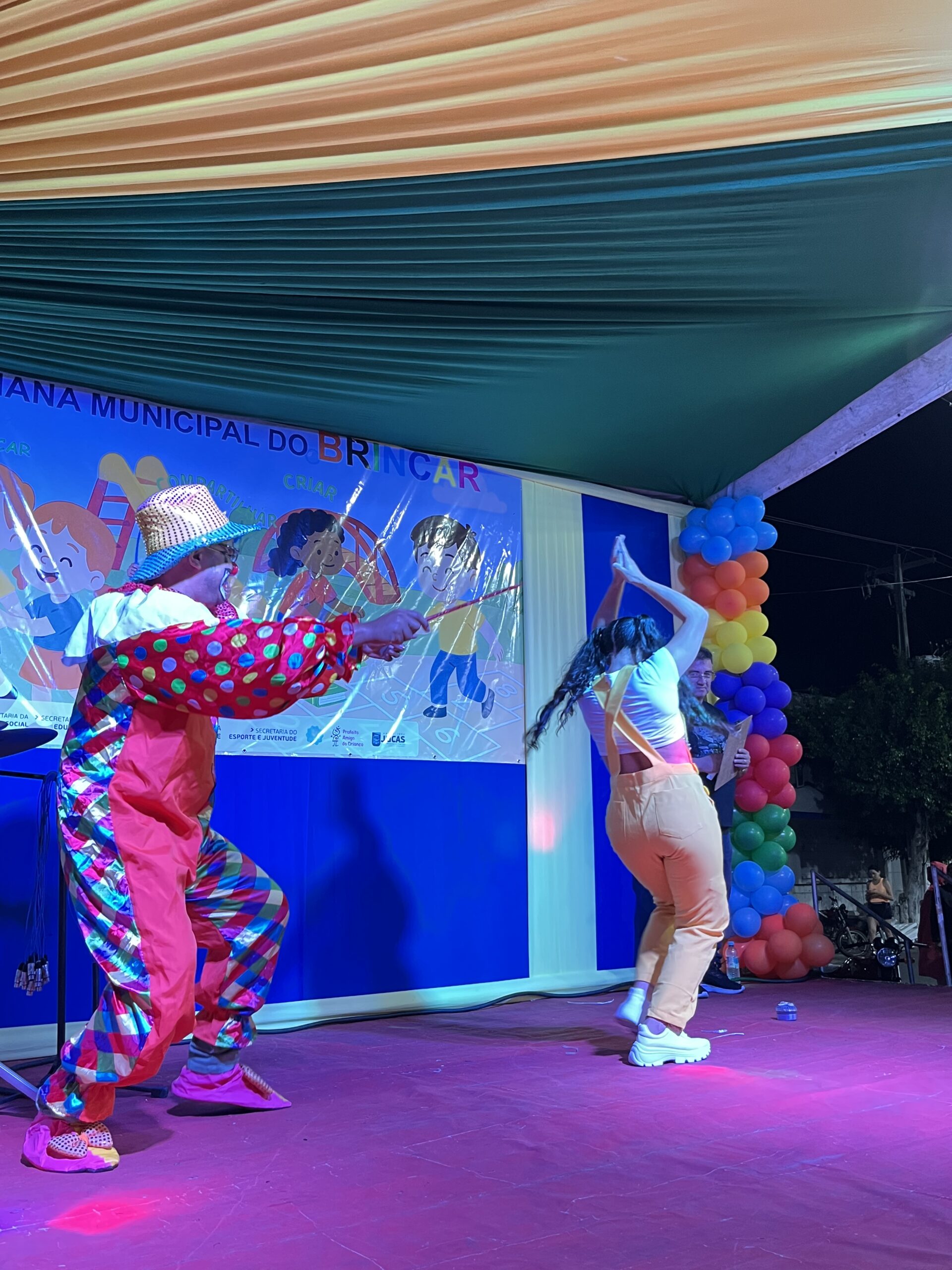 A magia tomou conta da praça com a presença animada do trio mais divertido da cidade: Tio Léo, Tio Helinho e Tio Sussu, que colocaram todo mundo para dançar, cantar e, claro, brincar! Crianças, pais e educadores participaram ativamente, transformando a noite em uma grande celebração ao direito de brincar e à importância da infância.