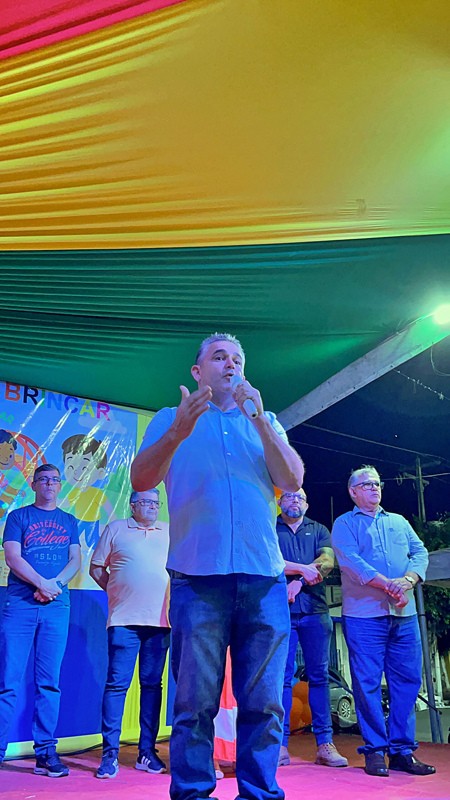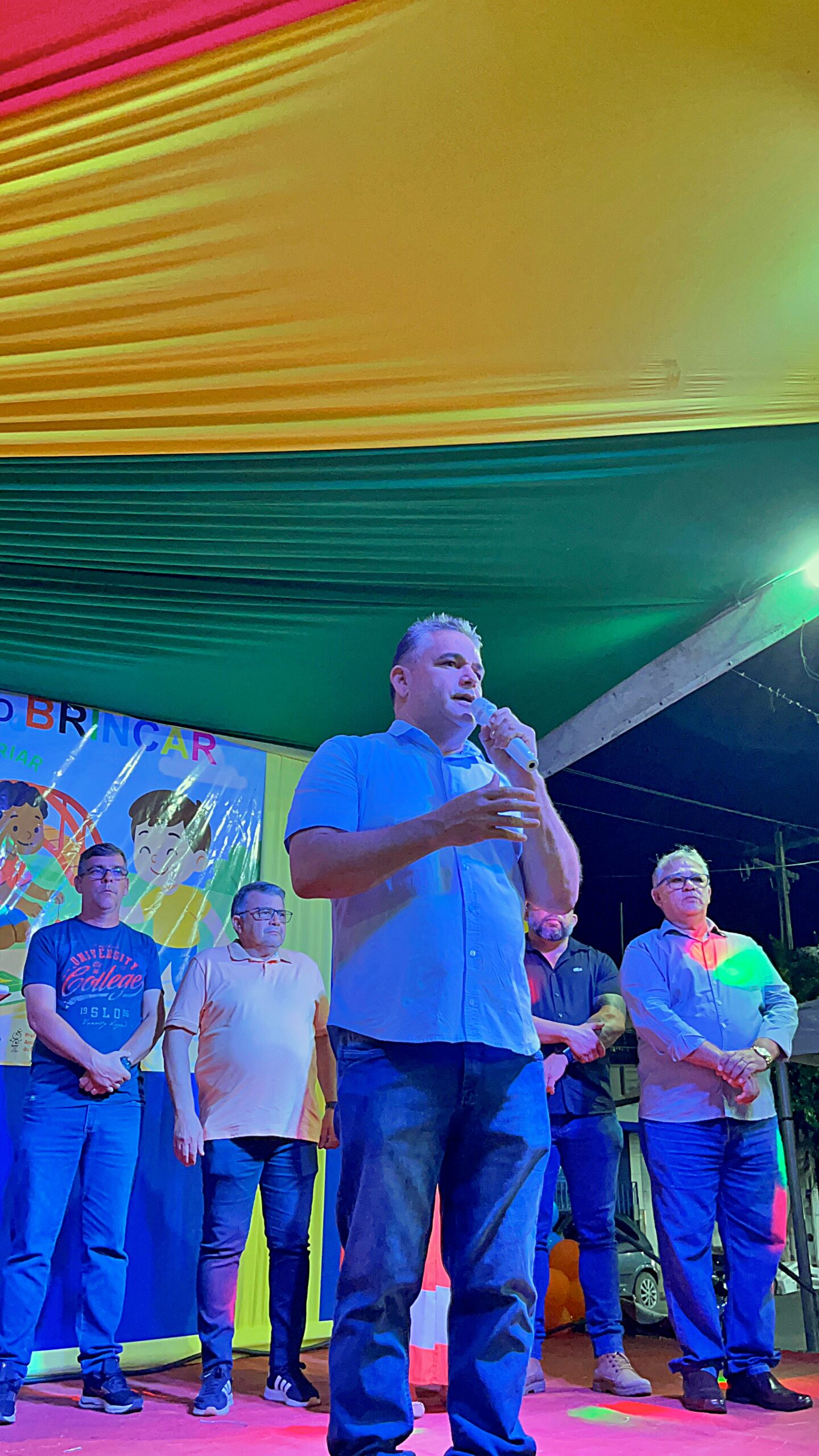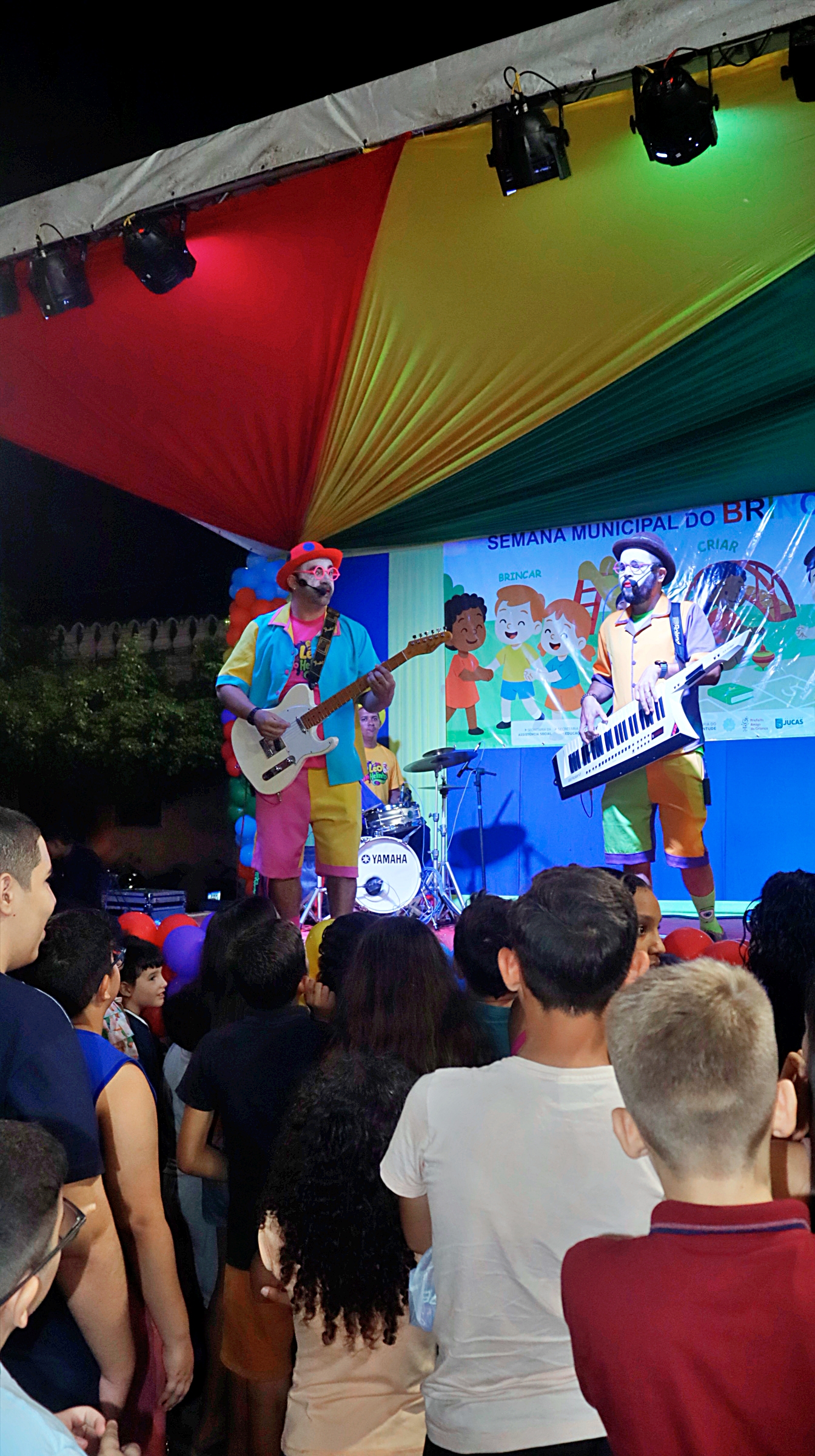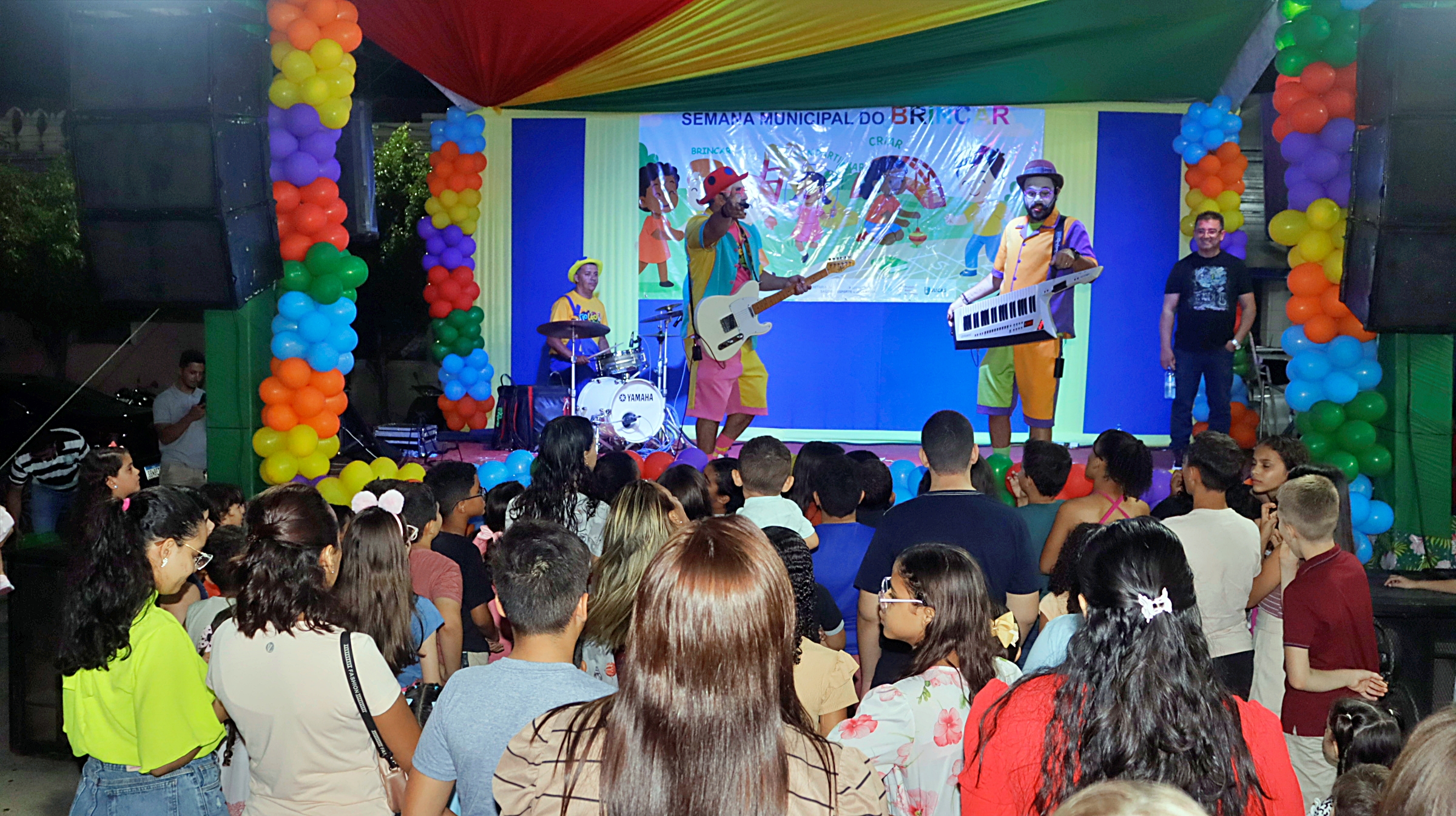 A magia tomou conta da praça com a presença animada do trio mais divertido da cidade: Tio Léo, Tio Helinho e Tio Sussu, que colocaram todo mundo para dançar, cantar e, claro, brincar! Crianças, pais e educadores participaram ativamente, transformando a noite em uma grande celebração ao direito de brincar e à importância da infância.