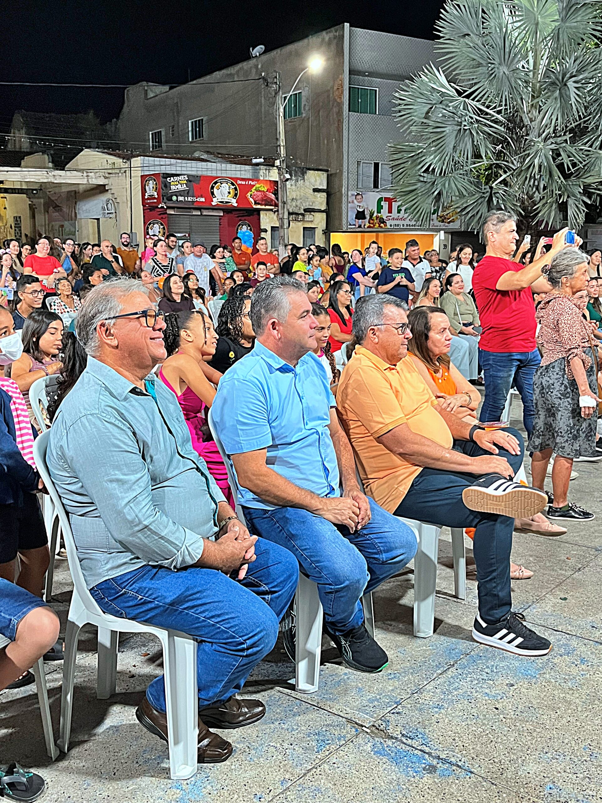 Na noite desta segunda-feira (26), a Praça Getúlio Vargas foi palco de muita alegria, cor e imaginação com a abertura oficial da Semana do Brincar em Jucás. O evento, promovido pela Prefeitura Municipal, encantou o público com apresentações criativas das escolas da rede municipal, que deram um verdadeiro show de talento, expressão e ludicidade.